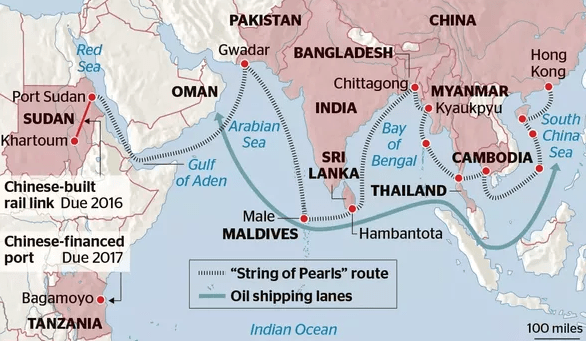 In order to maximize the coverage of possible bases for naval forces, there exists a realistic scenario that the ports currently providing infrastructure for trade and other commercial activities may be used by China also for military purposes, One of such examples is the Gwadar seaport in Pakistan, built by China and put into operation in 2007 as part of the China-Pakistan Economic Corridor. Another examples of the highly possible “military refurbishment” of commercial ports are: the container port of Colombo and the deep water port of Hambantota in Sri Lanka, which was leased for 99 years to China in 2017 ; the port project iHavan in the Maldives, which should become part of the Maritime Silk Road; then the ports of Kyaukpyu in Myanmar and Chittagong in Bangladesh, the construction of which is also financed by the Chinese side. These infrastructure facilities are suitable for the protection of Chinese sea trade routes and control in the Indian Ocean. They are usually ranked as base points in the so-called concept of Chinese strategy “String of pearls”. This strategy is focused mainly on increasing China’s economic, military, diplomatic and political clout in the Indian Ocean Region (IOR).